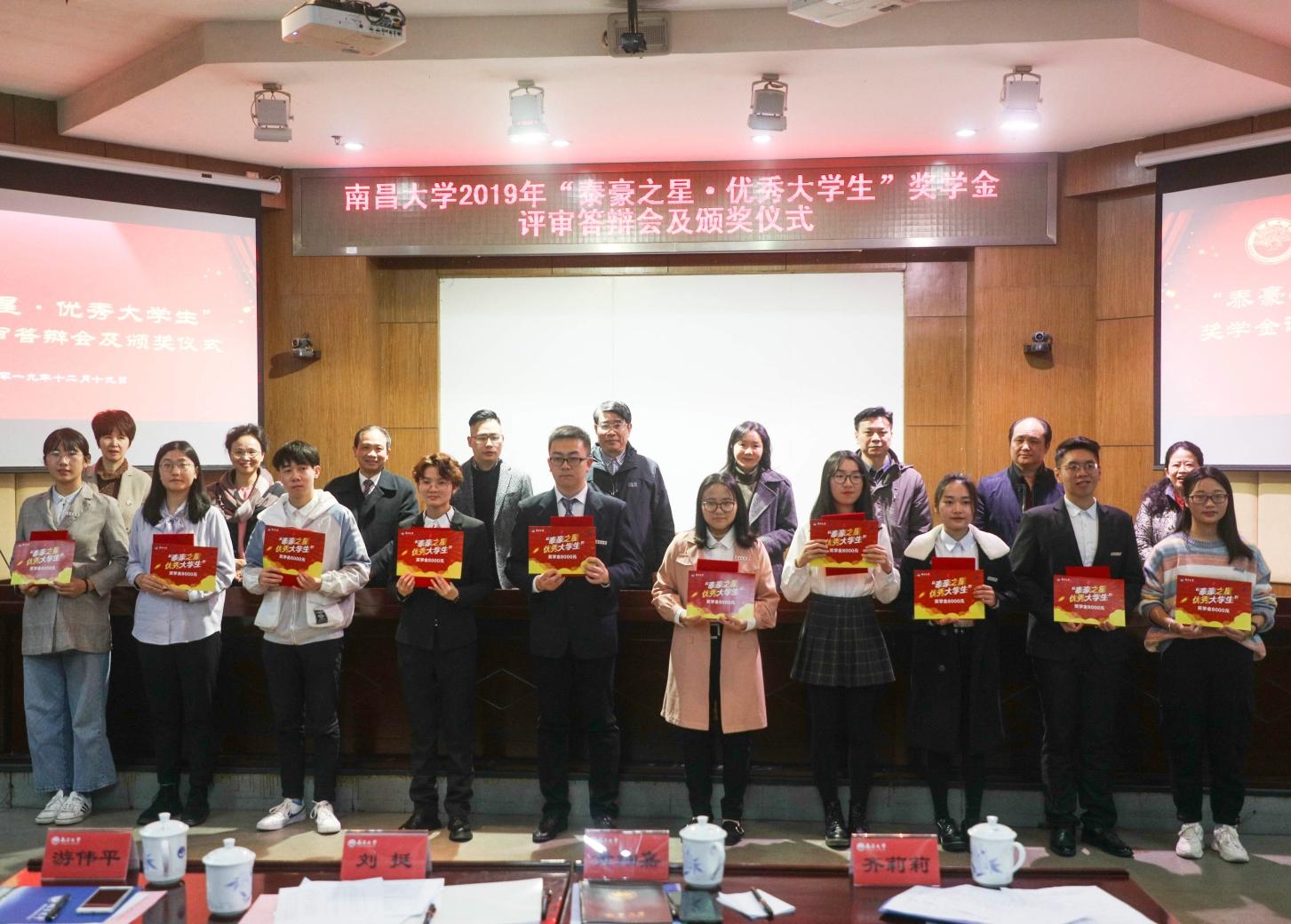 本網訊(記者涂金鳳)12月19日下午,南昌大學2019年“泰豪之星?優秀大學生”獎學金評審答辯會及頒獎儀式在辦公樓一樓報告廳舉行。江西發展研究院院長黃細嘉,泰豪科技股份有限公司副總裁劉挺、齊莉莉出席活動。