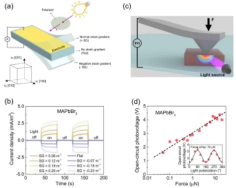 近日,南昌大學物理與材料學院舒龍龍教授及其合作者的最新研究成果以題為“Flexophotovoltaic effect and above-bandgap photovoltage induced by strain gradients in halide perovskites”(鹵化物鈣鈦礦的撓曲體光伏效應及超帶隙光電壓)在國際頂級期刊《Physical Review Letters》上在線發表。