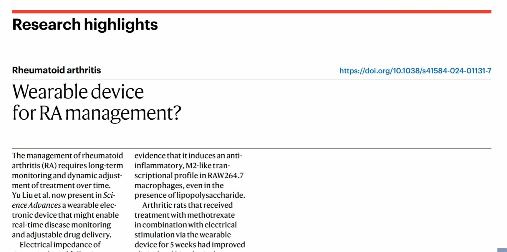 Nature Reviews Rheumatology在評述中提到:該項工作有望提供更加精準和個性化的醫療解決方案,改善患者的生活質量和健康狀況。此外,這種集成智能設備的成功應用還可能帶動其他相關領域的技術創新和研究發展。